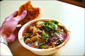 嘎巴菜是天津特色小吃,加上烧饼,就是一顿丰盛早餐。资料图片