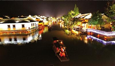 乌镇西栅夜景。