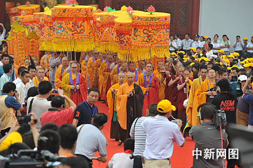 中新网4月28日电 近日,海南省澄迈县千年古刹永庆寺,第七届盈滨龙水节暨永庆寺开光法会在此举行。海内外53位高僧大德联袂开光。海南省政协主席钟文,省委常委、省委秘书长许俊,副省长符跃兰,中国佛教协会、山西省有关领导以及主办方代表山东鲁能集团有限公司副总裁赵健一行、澄迈县委、县政府领导与数万信众居士共同见证了这一佛门盛事。