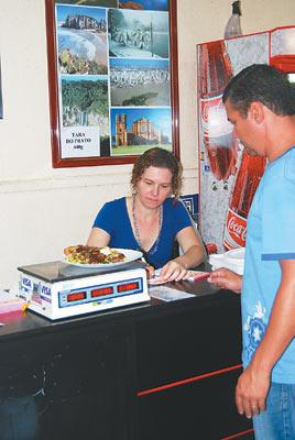 在正规的巴西饭店吃顿饭,至少要花几十美元。即使是工作餐,一般也要20美元。相比之下,记者更喜欢去“公斤饭”餐馆。“公斤饭”很有巴西特色,是按重量计费的自助餐。餐馆大多装潢简单,没有菜谱。靠墙一溜长桌上摆着各式饭菜,时鲜蔬菜、煎牛排、煮鱼片、巴西特色煮豆饭、意大利面条以及水果甜点,一应俱全。顾客手持菜盘,将挑好的饭菜拿到电子秤上称一下,然后按重量付款即可。