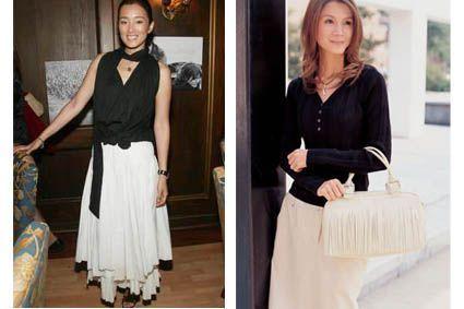 在飘逸的白色圆裙上,搭配合身的上衣。想穿着白裙子时,圆裙比长筒紧身裙更能掩饰过胖的身材。合身的深色上衣和白色大圆裙,巧妙地衬托出纤细的腰身。一串复古的长项链点缀,使你成为韵味十足的淑女。