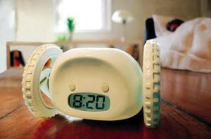 闹钟的英文名字“hide and seek”,意思是不抓住它就会无影无踪了。据新华社报道,这是美国麻省理工学院媒体实验室的科学家发明的新型闹钟,科学家给小钟装了一套轮子,作为它的“腿脚”。铃响后,如果贪睡的主人按掉响铃,小钟能够“跑到”桌子或是房间的另一边,继续吹响“起床号”。研究人员表示,当闹铃再次响起,单是起床找到小钟本身就足以让主人清醒,加之闹铃一直在响,就是贪睡的人也无法再次入睡了。