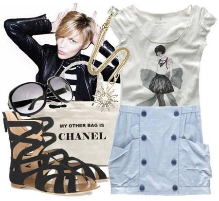 清爽海洋风格的高腰裙,舒适自然,不能少了今夏大热的角斗士凉鞋。