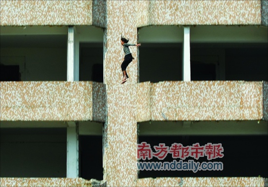在医护人员将女子抬上救护车时,记者见到女子的腿部有出血。随后瘦弱的可见肋骨的男子光着上身一瘸一拐地被民警带下楼,身旁的小女孩还不停地问“我妈妈呢”。记者随后了解到,跳楼的女子并无生命危险,只是腰部被扭伤了。(记者何永华摄影:本报记者陈奕启 制图:卢笳)
