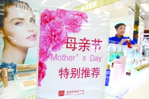 本周日,恰逢一年一度的“母亲节”,北京各商家从今天开始拉开新一轮“情感促销”的大幕。不过,记者发现,一些打着“母亲节”旗号推荐的商品,从数千元的大牌化妆袋到近千元一件的短袖T恤,远远超出妈妈们的心理承受范围,让妈妈们心疼不已;更有商家把一款“坏女孩套装”彩妆也纳入母亲节礼单,着实“雷”倒了不少妈妈。