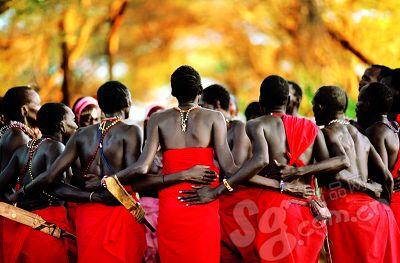 非洲人的婚礼,充满热情、活力、原始质朴的狂欢。婚礼就是一个家族或族群的大Party,舞蹈、尖叫,是婚礼上最盛情的祝福。在肯尼亚,马赛人聚集在一起为婚礼舞蹈,新娘和新郎被包围在人群之中,接受众人特别的祝福。 (来源:精品购物指南)