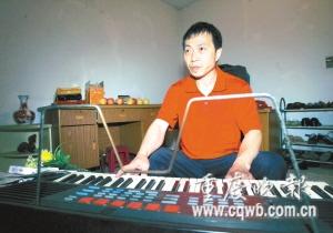 简广荣想起女儿,就胡乱地敲击电子琴。 记者 张质 摄