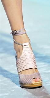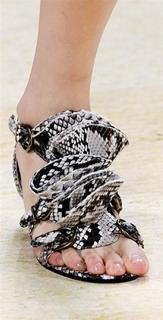 不管你是不是赶时髦,有这么一种让人又爱又恨的凉鞋你一定已经注意到了。无论到底应该称之为角斗士鞋还是罗马鞋,这种缠来绕去的绑带凉鞋确确实实已经连续大热了好几季。来到2009春夏,依然热度不减的它摇身一变,以更加多样的方式呈现在我们面前。在保留原有形态的基础上,简化了缠绕的繁复程度,同时也降低了捆绑位置的高度,露出了大部分脚踝,提高了对穿着者身材的包容度。这一变化真称得上是可喜可贺,使得大多数腿部不甚修长的普通女孩不用再向绑带凉鞋say no了。