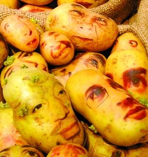 黎巴嫩艺术家Ginou Choueiri在个人博客上推出土豆肖像艺术,利用土豆外皮的天然纹理、颜色绘出各式人等的面部表情。