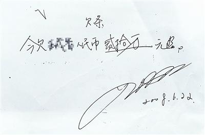 楚楚说,这张20万欠条的签名,有8条弧线,是雅晖的艺术签名