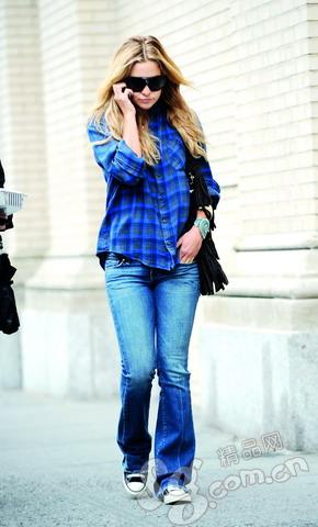 搭配支招:收腰的印花T恤搭配喇叭裤,突出了腰部的曲线,喇叭裤有效地遮盖住了腿部的肥胖,轻松带出S型曲线。