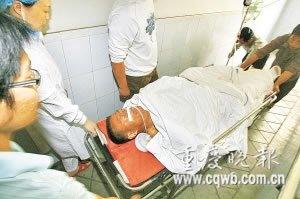 受伤的江中华被紧急送往医院进行抢救 记者 杨帆 摄