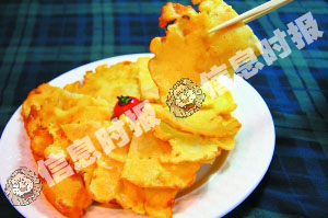 香蕉为性寒味甘之品,寒能清肠热,甘能润肠通便,常食能帮助消化、使肌肤润滑光泽。香蕉煎饼是琪琪最爱吃的早餐,她称香蕉以切片为宜,不建议榨汁或切丁,将香蕉片和面糊拌匀后,煎至金黄色即成。每当吃到饼中香甜软滑的香蕉时,都会让她惊喜连连,一吃停不了口!