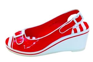 搭配指南:不妨把红色坡跟鞋和运动风格的服饰搭配着穿,会很有都市摩登运动的风格。不过最好身上的颜色不要超过3种,免得太杂。
