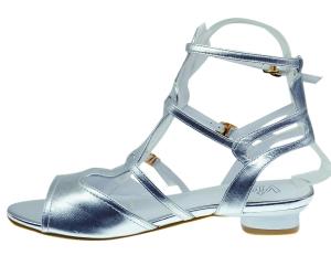 银色角斗士简约版凉鞋(VIA,668元)这款简约的小鞋子用银色搭配金色的扣子,很具有未来主义的风格,整个鞋子设计简约、清爽凉快,不会显得啰嗦。