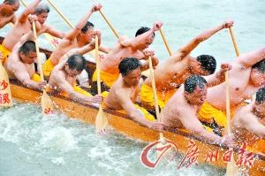 作为主办方,聚龙村村长周广耀说。如今已经提出“广佛同城”,我们计划从今年起将“世代同饮一江水,狮舞龙腾贺同城”作为今后龙舟赛的口号。据悉,由于今年是广佛同城第一年,前来聚龙村的龙舟也较往年多,共有32条,10条来自荔湾区的山村、海北村等,一条来自白云区,其他来自盐步横江、聚龙、大沥谢边及黄岐等地。在这些龙舟中,其中6条仅游河,26条参加比赛。