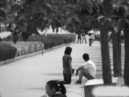 昨日,记者在猫扑大杂烩上看到了网友“castmylife”首发的帖子,帖子的点击率已经突破3万。发帖者在帖子上展示了3张图片:在一闹市街道上,一个男生坐在花坛旁,而一名低着头的灰衣服长发女生正跪在他的面前,似乎正在央求着什么,男生一语不发,并把头转向一边。在最后一张图片里,男生干脆起身快步离开,那名女生则仍跪在地上,望着男生离去的背影一语不发。