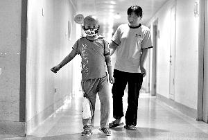 在和母亲陈淑春谈话时,7岁的子晨从门边露出光光的小脑袋向医生办公室里张望。医生说,能恢复到现在这样,已有很大改观,“刚住院时,他双腿没有知觉,3次病危。”