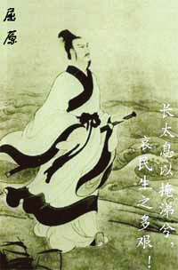 据《史记·屈原贾生列传》记载,屈原是春秋时期楚怀王的大臣。他倡导举贤授能,富国强兵,力主联齐抗秦,遭到贵族子兰等人的强烈反对,屈原遭馋去职,被赶出都城,流放到沅、湘流域。他在流放中,写下了忧国忧民的《离骚》、《天问》、《九歌》等不朽诗篇。公元前278年,秦军攻破楚国京都。屈原眼看自己的祖国被侵略,心如刀割,于是在五月五日这一天,写下了绝笔作《怀沙》之后,抱石投汨罗江而去。