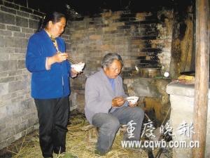 沉默中,老两口吃着用白菜和着米煮的、没有一点油水的烫饭,眼泪一滴滴落在碗中。