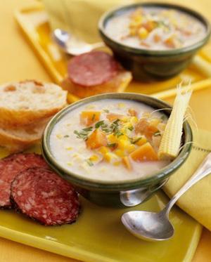 汤类非常有益健康,而且价格低廉、易于制作。可是,罐装浓汤是由盐、脂肪、人造添加剂、防腐剂,或许还有一些脱水胡萝卜调制成的营养价值非常低的“混合物”。一罐浓汤含1000毫克钠,大约是你每天所需量的一半。因此,还是自己准备鸡肉、牛骨和蔬菜,亲手做一碗热腾腾、香喷喷的汤吧。