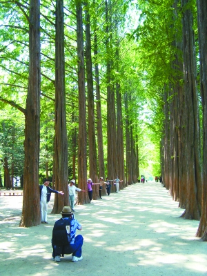 难道在首尔地区还有一个共和国?没听错。但这个叫南怡共和国的其实是北汉江清平水库里的一片叶状小岛,私人所有,却戏称共和国以吸引游客,还有“国徽”和“国旗”。南怡岛出名是因为大名鼎鼎的《冬季恋歌》在此取景拍摄,此韩剧风靡日本,引无数日本大妈前来南怡岛追逐韩流,就此成为国际旅游景点。
