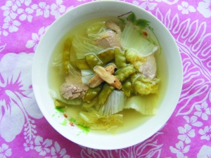 北芪搭配瘦肉煲出的汤水是一道养阴益血、补气生精的滋补靓汤。趁着现在初夏正是蔬菜丰富的季节,今天我们不妨在北芪瘦肉汤中加入大白菜和荷兰豆两种鲜蔬,增加清甜味道之余,更添润燥、增强机体抗病能力的食疗功效。
