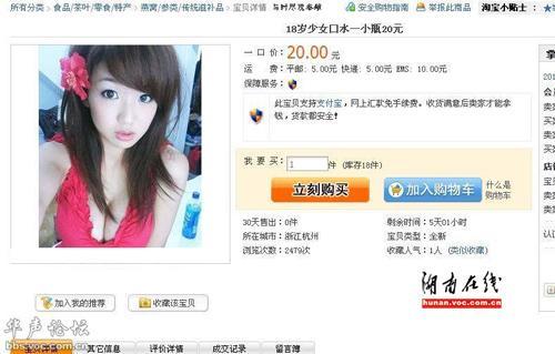 卖时间,卖青春……在创意层出不穷的当下,一店主在网上兜售美少女口水的举动再一次“雷”倒众人。今日,网友“ximacai”在华声论坛发帖称,虽然淘宝售出的商品花样诸多,但兜售美少女口水却还是第一次看到,令他大跌眼镜。