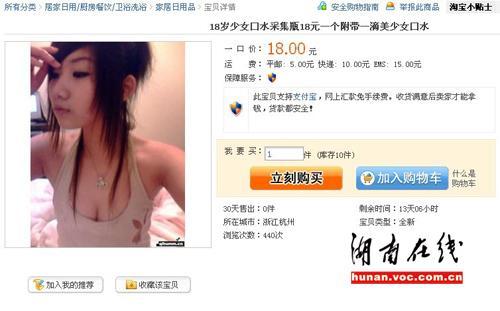 通过网友提供的信息,记者在网上搜索发现淘宝网上确有一店主出售美少女口水,也是用一张低胸性感美女图片作噱头,只是之前“出售美女口水”的字样被改成了“卖18岁少女口水采集瓶附带一滴美少女口水”的字样,价格下调为18元每瓶。
