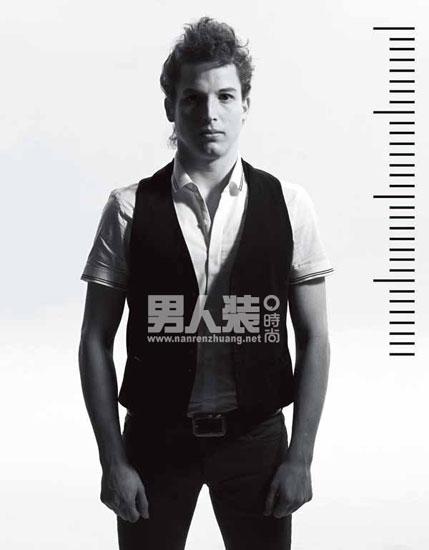 丹阳的发型首先很没有型,而且偏长,于是造型师卖了把子力气,帮他打理了一个干净、利索的短发,显得脸形瘦长不少,白色衬衫+黑色马甲来自NELL BARRET,较之原先普普通通的Polo针织上衣,的确年轻了不少,视觉上也变得修长了。年轻化是丹阳必修的功课之一,短袖衬衫和时尚马甲将他打造出潮人的气息,而他本来的穿衣习惯则显得太成熟、保守了。