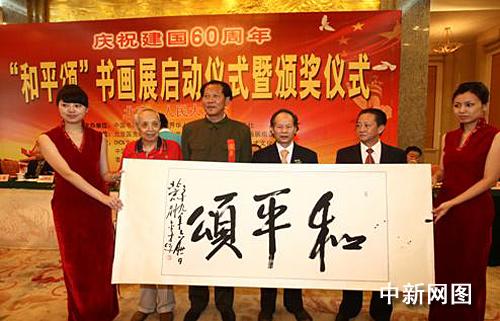 中新网6月22日电 “和平颂”书画展启动仪式暨颁奖仪式昨日在北京人民大会堂隆重举行,全国侨联副主席、全国妇联副主席林丽韫、原全国工商联主席王治国等领导,齐耕夫等书画大家,首都文化界、新闻界众多知名人士以及书画作者出席。