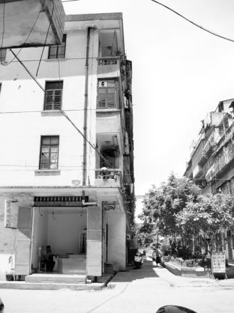 女生就是从这栋民房的四楼(画圈处)爬水管下来时,不慎从三楼(箭头处)坠落