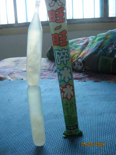 据张先生介绍,因为五岁大的女儿特别爱吃旺旺碎冰冰,几乎每天都带两根到学校去,他在今年四月底在家附近的超市买了两包。但在5月中旬,女儿突然拉起了肚子不得不被送到医院,医生检查后被告知是因吃了不洁净的食物引起了腹泻。到底吃了什么东西?张先生这才想起来,女儿在前段时间总是说吃了旺旺碎冰冰有一种想吐的感觉,自己根本没在意,以为是她吃得太多的原因。这时他才去冰箱打开剩余的碎冰冰查看,这一看立刻发现其中两根存在异样,“一根里面有絮状物,像是杂质,不知道是什么东西,另外一根封口处都发霉了,有黑色的物质在里面,看着非常的恶心”,张先生说。