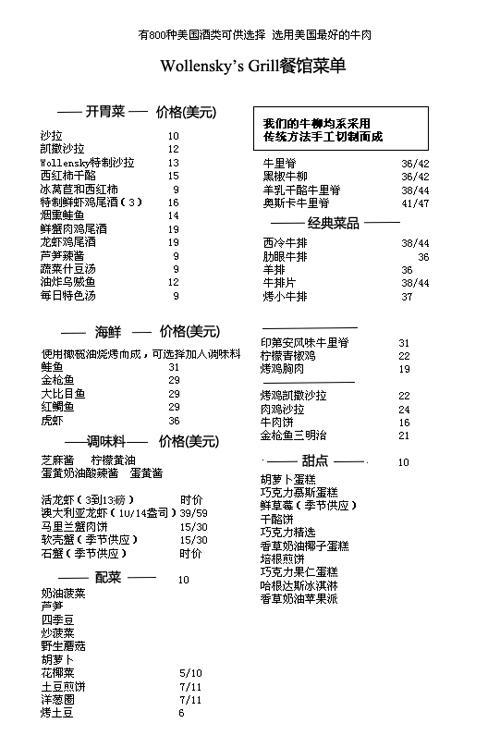 根据Smith&Wollensky牛排连锁店网站的资料,这家餐厅每道菜在30~60美元之间,最贵的一款菜是14盎司的澳大利亚龙虾,价值59美元。对于211万美元的成交价格,Smith&Wollensky显得很惊讶,他们称“相对竞拍的天价,这顿午餐花费只是个零头。”