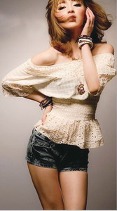 束腰的松紧弹性腰围,格外的修饰女人的腰部曲线,使之具有显瘦的效果,强调出女人味与浪漫的宫廷感,而且弹性的松紧一字领剪裁非常好搭配,搭配短裤或是窄管裤都是能够呈现流行感。