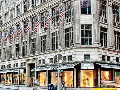 “Saks Fifth Avenue”成立于1902年,原来是位于目前Macy’s百货公司的现址营业,1926年搬到现在的位置,也就是第五大道611号近50街的西侧。名贵珠宝首饰和名牌设计师服饰是该店的特色,精心设计的橱窗展示是纽约的风景之一,特别是圣诞节的橱窗展示,从11月底至新年的第一周。8楼的咖啡馆有不错的甜点,还可以俯瞰风华绝伦的第五大道街景。