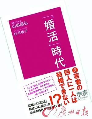 《“婚活”时代》由社会学家山田昌弘和记者白河桃子合著,去年初一上市即售出17万册。这两名作者把日语“婚姻”和“活动”两词合成“婚活”一词,意为一切与结婚相关的活动。他们鼓励未婚青年主动出击,因为坐等意中人出现远远不够。