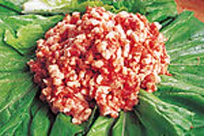 肉糜 肉糜是经搅肉机搅碎的鲜肉或鲜冻肉,因受机械损伤,原有的组织结构被破坏,且接触空气的面积增大,肉汁渗出多,在加工过程中,肉在接触机械、工具时可能受细菌污染,而细菌在肉糜中繁殖的速度较完整的肉要快3至4倍,所以肉糜不应该久藏。无证摊点的肉糜还可能含有甲状腺、淋巴腺、肾上腺等有害成分。肉糜应该是红白分明的,如果里面有红色小肉粒,很可能是“三腺”。因此肉糜最好到有加工条件的超市、大卖场,看中一块肉后请工作人员当场清洗,当场搅碎,并随买随吃。