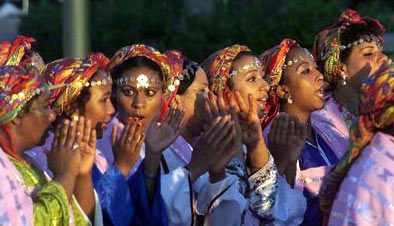 在摩洛哥阿特拉斯山区的柏柏尔人居住地,有“新娘市场”。每年9月,那里都要举行“穆塞姆节”,即圣徒纪念日,也是求偶盛会。期间,女方家长或亲戚领着准备出嫁的女子来到市场,小伙子们睁大眼睛悉心挑选自己的意中人。女子的打扮各不相同,待字闺中的少女穿着鲜亮,戴面纱,披圆形头饰;准备再嫁的寡妇则身着肃穆,戴面纱,但披的头饰是尖顶的。求偶的男子可以主动与女子搭讪,如果女子对他中意,就允许他握住自己的手。