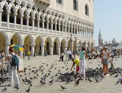 意大利威尼斯的圣马可广场,名列世界五大细菌最多的旅游景点的第四位,威尼斯著名的圣马可广场拥有不可思议的美丽景色,同时也有肮脏的一面——那里有成千上万饥饿的鸽子。虽然不再有人出售食物给游客喂鸽子,无数的鸽子仍旧聚集在广场上,游客们还是会伸手去摸,甚至抱鸽子。千万要小心——这些肮脏的飞禽还会给你些意外的“礼物”哟。