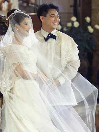 通常在婚礼上,新娘要身穿传统的白色婚纱,而新郎则身着菲律宾传统男式礼服(barong)。这种礼服是一种透明的系扣男式衬衣,通常用来参加一些特殊聚会或重大场合。婚礼的主办人将会参加婚礼,见证新人结拜为夫妻。而这些主办人同时意味着指导和帮助,即新婚夫妇在需要时可以得到他们慷慨的帮助。