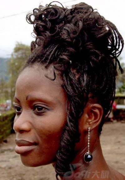 高耸的头发显示着这位女人华丽的气质。中部非洲的女人非常注重她们的头发,梳理式样越怪异,越能吸引人们的眼球。