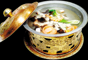 太后火锅中的水饺应该是现在最小的饺子了,是当初御厨为了讨慈禧开心发明出来的,最初只有猪肉馅儿的,如今加入了鱼和蟹馅儿。