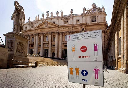 如果你打算在温暖的气候去意大利的教堂,出发的时候不要仅仅带短裤和无袖上衣。去意大利教堂天主教大教堂的游客穿着必须谨慎,无论是男士还是女士,都不允许穿短裤和无袖上衣。在教堂门口会有警卫或教民检查,所以在出发的时候记得带上一件长袖衫或其他套头衫。