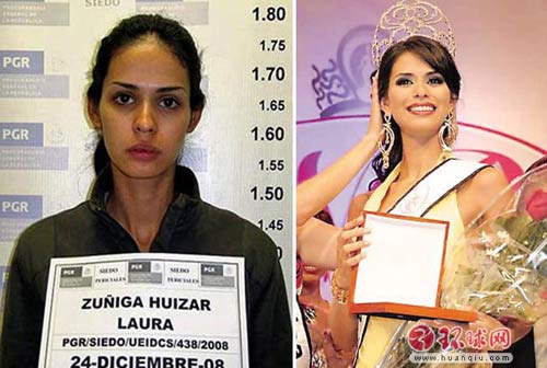 墨西哥选美大赛冠军劳拉·苏尼加2008年12月在墨北部锡那罗亚州被警方逮捕,她涉嫌参与黑帮的军火交易。苏尼加当年7月赢得“锡那罗亚小姐”之前是一个幼儿园教师,10月,苏尼加又赢得了“西班牙裔美洲小姐”的桂冠,打败了众多来自拉美的对手。9月,苏尼加还赢得了“墨西哥小姐”选美比赛的第三名,取得了参加2009年世界小姐大赛的入场券。