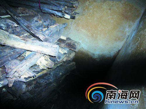 南国都市报记者来到杨才邦4年来藏匿的地点——白沙县七坊镇光雅照明经济场。记者进了主屋左拐走进一间大约4米长的里屋,继续往里走就是杨才邦4年以来藏身的厨房。厨房角落里有一个大约1米多高的木材堆,仔细看才能看出那是用木材堆积成的小暗房,小暗房长宽不足2米,正好可以容纳一个人。