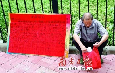近日许湧源摆着牌子,微缩着身子,在街头卖身救女。杨曦摄