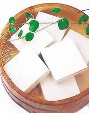 1、将一块豆腐捣碎,用纱布过滤水分。