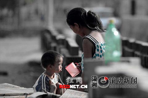 这个大姐不好当,年幼的弟妹需要她照料。网友“听雨11228” 摄