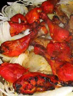 抵达加德满都的第一晚我们四个人傻傻的不知道要吃什么,在路上晃来晃去,后来不知怎么的就去了Third Eye Restaurant吃印度菜,侍者建议我们点印度哈辣鸡(Tandoorie Chicken),另外又点了印度烤饼(Naan)及一种红咖哩(curry)叫做Chicken Tikka Masala,这一吃之下惊为天人,印度菜真不愧是世界美食啊!难以忘情的我们在归国前一晚又再度光临,因为血拼的结果大家所剩无几,于是带着计算器,硬是挤出身上的最后一分钱,一定要再吃一只哈辣鸡全鸡(375 Rs),才甘心回家。